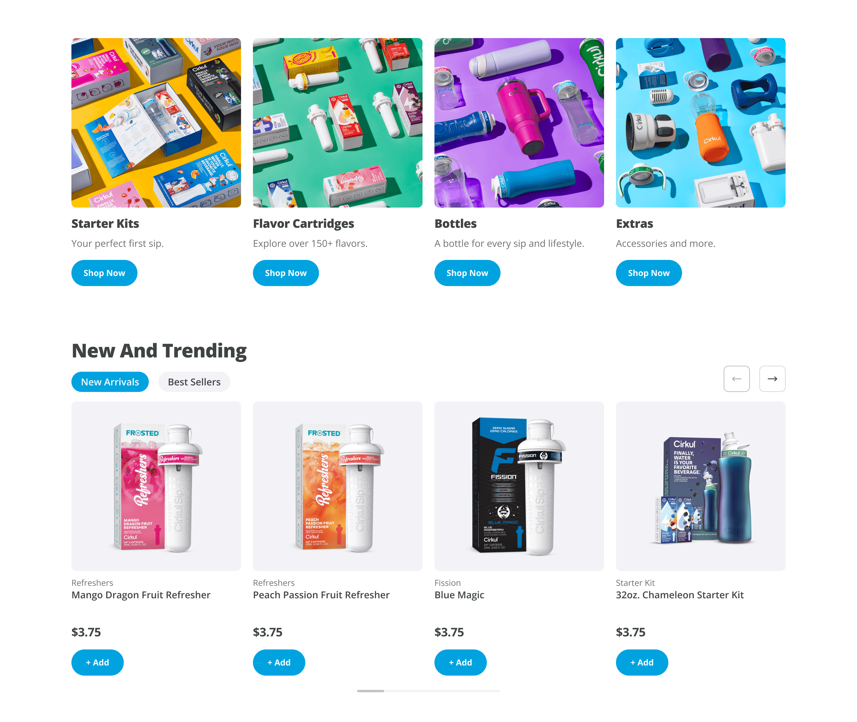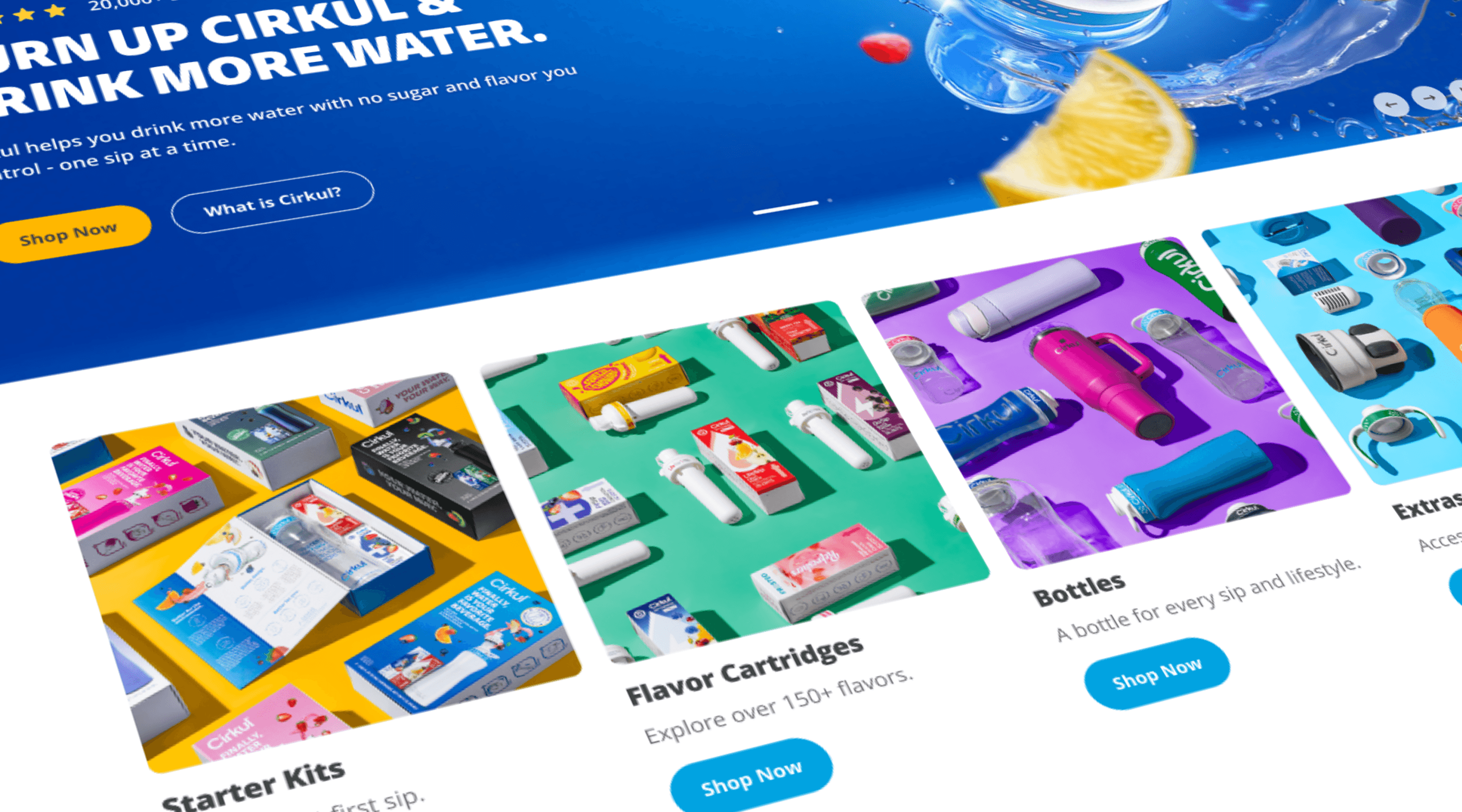Provide fast, high-intent users a clear path to shop early—before continuing the broader story—while giving new visitors a quick snapshot of Cirkul’s product ecosystem.